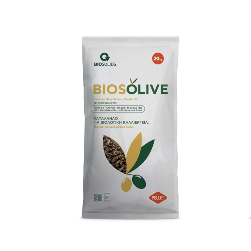 Το BIOSOLIVE 4‑3‑3 είναι ένα οργανικό λίπασμα σε μορφή pellet, ιδανικό για χρήση στη βιολογική γεωργία.