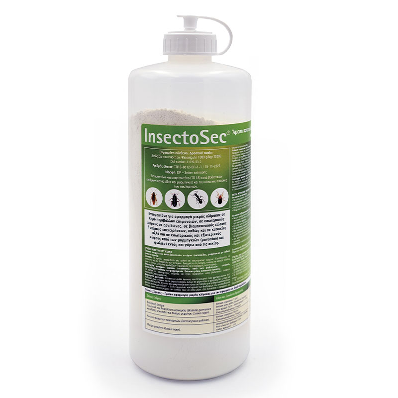 Το InsectoSec είναι ένα βιοκτόνο κατά των ερπόντων εντόµων σε μορφή λεπτής σκόνης, προερχόμενο από 100% φυσικό διοξείδιο του πυριτίου