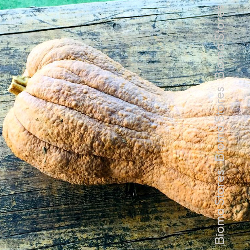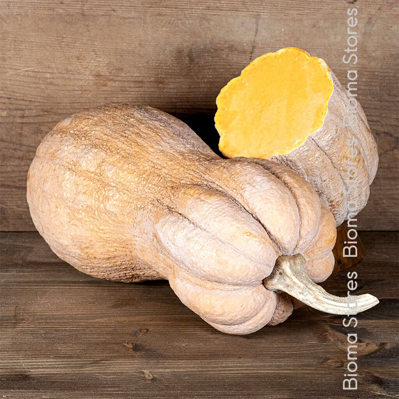 Καρπός μεσαίου μεγέθους, 3 – 4 κιλών, με ζαρωμένη, πορτοκαλί – ροζ χρώματος φλούδα. Η σάρκα είναι σκούρου πορτοκαλί χρώματος. Όταν μαγειρεύεται, έχει κρεμώδη – λεία υφή και γεύση, αλμυρή και γλυκιά.