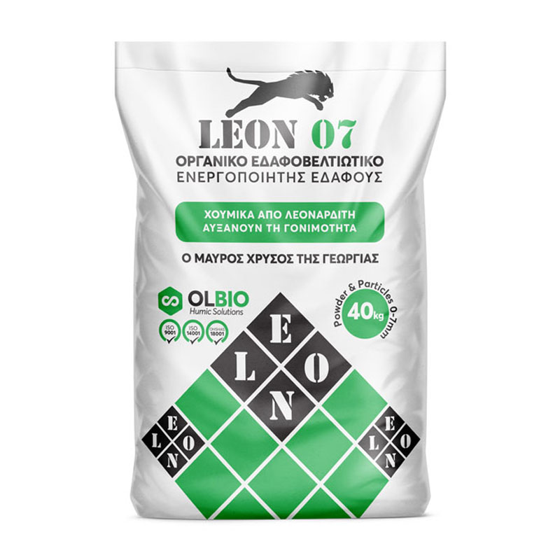 Το LEON 07 είναι ένα οργανικό λίπασμα και εδαφοβελτιωτικό άμεσης δράσης σε στερεή μορφή. Στην μονάδα μας εφαρμόζουμε την μέθοδο της Διπλής Ζύμωσης -Χουμοποίησης.