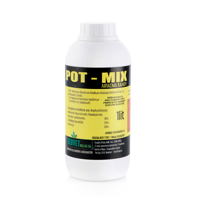 Ένα από αυτά, είναι το διαφυλλικό λίπασμα καλίου Pot – Mix (εγκεκριμένο για βιολογική καλλιέργεια), που περιέχει υψηλή συγκέντρωση αμινοξέων. Τα αμινοξέα, συμβάλλουν στην ταχύτερη και την καλύτερη απορρόφηση των ανόργανων θρεπτικών στοιχείων .