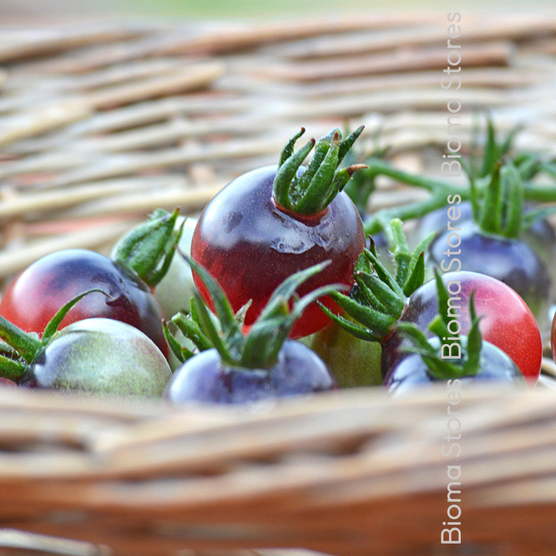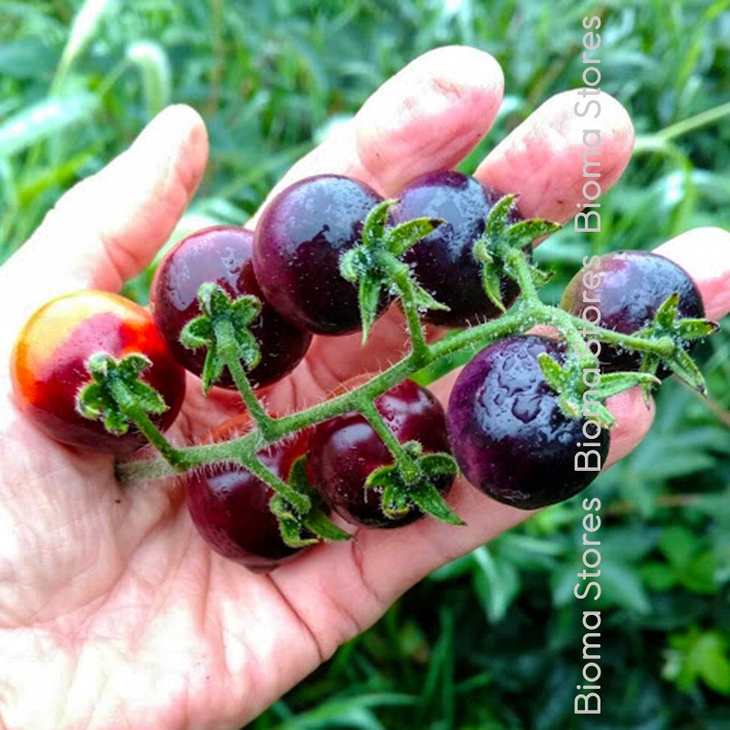 Πλεονεκτήματα τομάτας Μπλε μούρο: 1) Αντοχή στο σκάσιμο: Οι καρποί διαθέτουν φλούδα που δεν σκάει εύκολα, ακόμη και σε περιόδους με έντονες βροχοπτώσεις ή ακανόνιστο πότισμα. 2) Υψηλή παραγωγικότητα: σε ιδανικές συνθήκες, παράγει άφθονα τσαμπιά από καθ’ όλη τη διάρκεια της σεζόν. 3) Σταθερότητα χρώματος στο μαγείρεμα: σε αντίθεση με άλλες ποικιλίες, οι καρποί, διατηρούν μεγάλο μέρος της σκούρας χρωστικής τους, ακόμα και όταν ψήνονται ή μαγειρεύονται. 4) Οφέλη για την υγεία: οι ανθοκυανίνες βοηθούν στη μείωση των φλεγμονών, προστατεύουν την καρδιά και ενισχύουν το ανοσοποιητικό σύστημα.