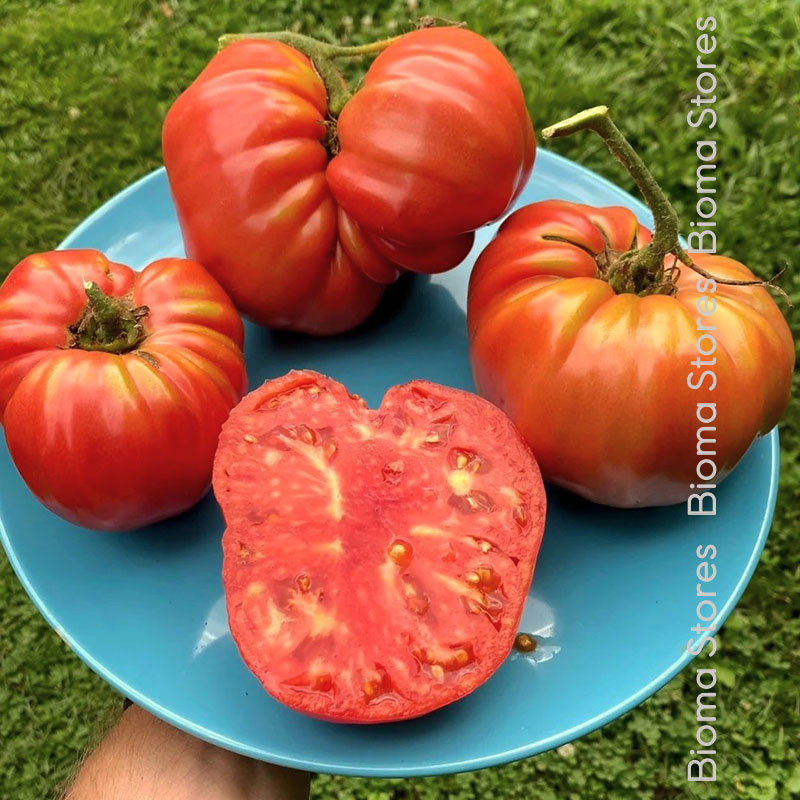 Τύπος τομάτας: ανήκει στις κρεατοντομάτες ή μεγαλόκαρπες, Beefsteak ή Βeef tomatoes (Solanum lycopersicum L.): καρποί μεσαίου και πολύ μεγάλου μεγέθους. Το βάρος τους, ανάλογα με την ποικιλία, μπορεί να φτάσει τα 4 κιλά (μέσος όρος 500 γρ. έως 1 κιλό). Το χρώμα τους είναι κόκκινο, ροζ κ.α. Είναι πολύ δημοφιλής τύπος τομάτας, με πολλές χρήσεις στην κουζίνα. Τα φυτά αυτού του τύπου τομάτας, μπορεί να είναι καθιστά, ημί-αναρριχώμενα και αναρριχώμενα. Η καλλιέργεια τους μπορεί να γίνει υπαίθρια ή σε θερμοκήπιο.