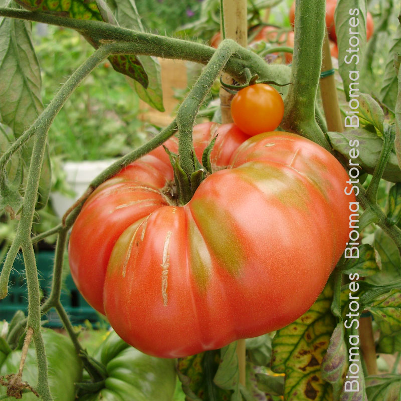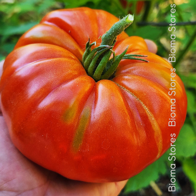Τύπος τομάτας: ανήκει στις κρεατοντομάτες ή μεγαλόκαρπες, Beefsteak ή Βeef tomatoes (Solanum lycopersicum L.): καρποί μεσαίου και πολύ μεγάλου μεγέθους. Το βάρος τους, ανάλογα με την ποικιλία, μπορεί να φτάσει τα 4 κιλά (μέσος όρος 500 γρ. έως 1 κιλό). Το χρώμα τους είναι κόκκινο, ροζ κ.α. Είναι πολύ δημοφιλής τύπος τομάτας, με πολλές χρήσεις στην κουζίνα. Τα φυτά αυτού του τύπου τομάτας, μπορεί να είναι καθιστά, ημί-αναρριχώμενα και αναρριχώμενα. Η καλλιέργεια τους μπορεί να γίνει υπαίθρια ή σε θερμοκήπιο.