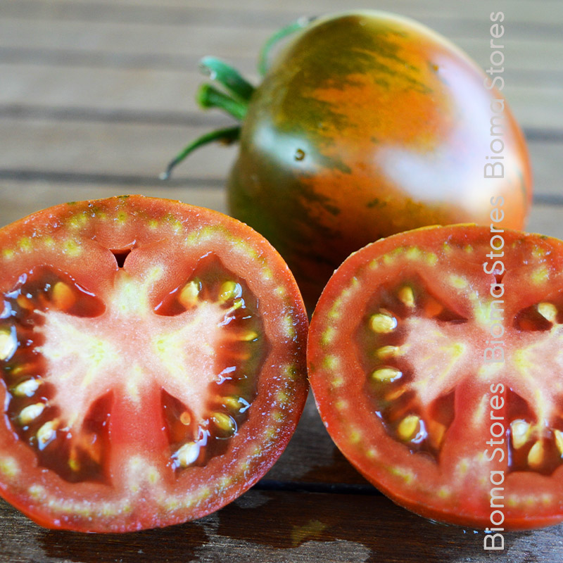 Πολύ σπάνια τομάτα, με προέλευση, την Αυστρία ή την Γερμανία. Την πολλαπλασιάσαμε για πρώτη φορά στην Ελλάδα, την άνοιξη 2021. Την καλλιεργήσαμε και μας εντυπωσίασε η ποιότητα και η παραγωγικότητα της. Είναι η καλύτερη τομάτα (κατηγορίας 100 γρ.) που έχουμε.